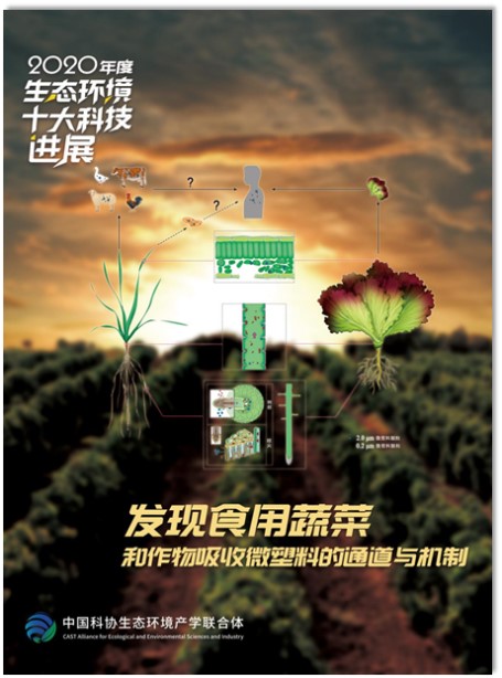 2020中國生態(tài)環(huán)境十大科技進展宣傳海報:發(fā)現(xiàn)“食用蔬菜和作物吸收微塑料的通道與機制”