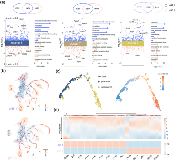 圖1 基于單細(xì)胞轉(zhuǎn)錄組學(xué)分析海水酸化對海月水母碟狀體刺細(xì)胞的影響[1]